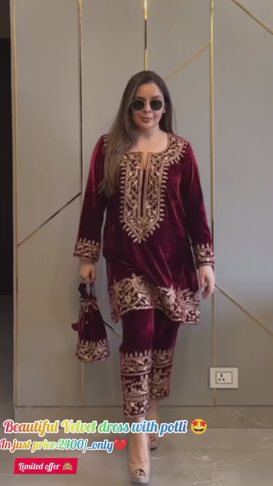 Product details: velvet dress with potli embroidery shirt trouser embroidered potli velvet stuff π― good quality stuff All sizes and color are available limited offer available ππ»π«