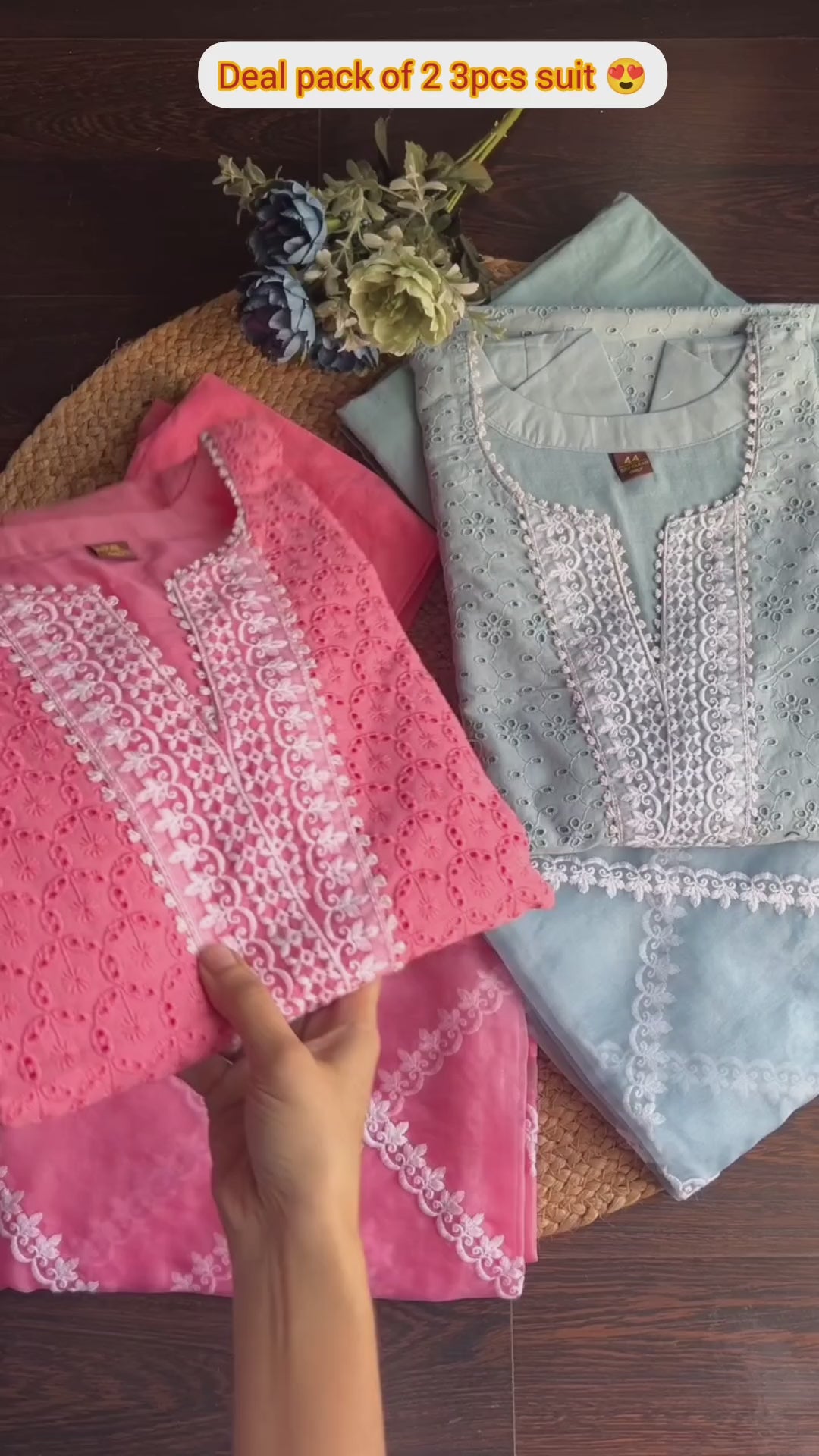 Product Description: chikankari 3pcs suit for women pack of 2 deal price 2400/- beautiful dupatta with pent Cambo 🩵 💯