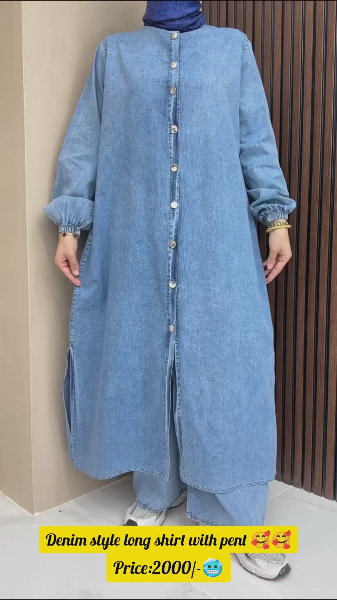 Product Description: Denim style long shirt with pent for women all sizes and colors are available 💖💯