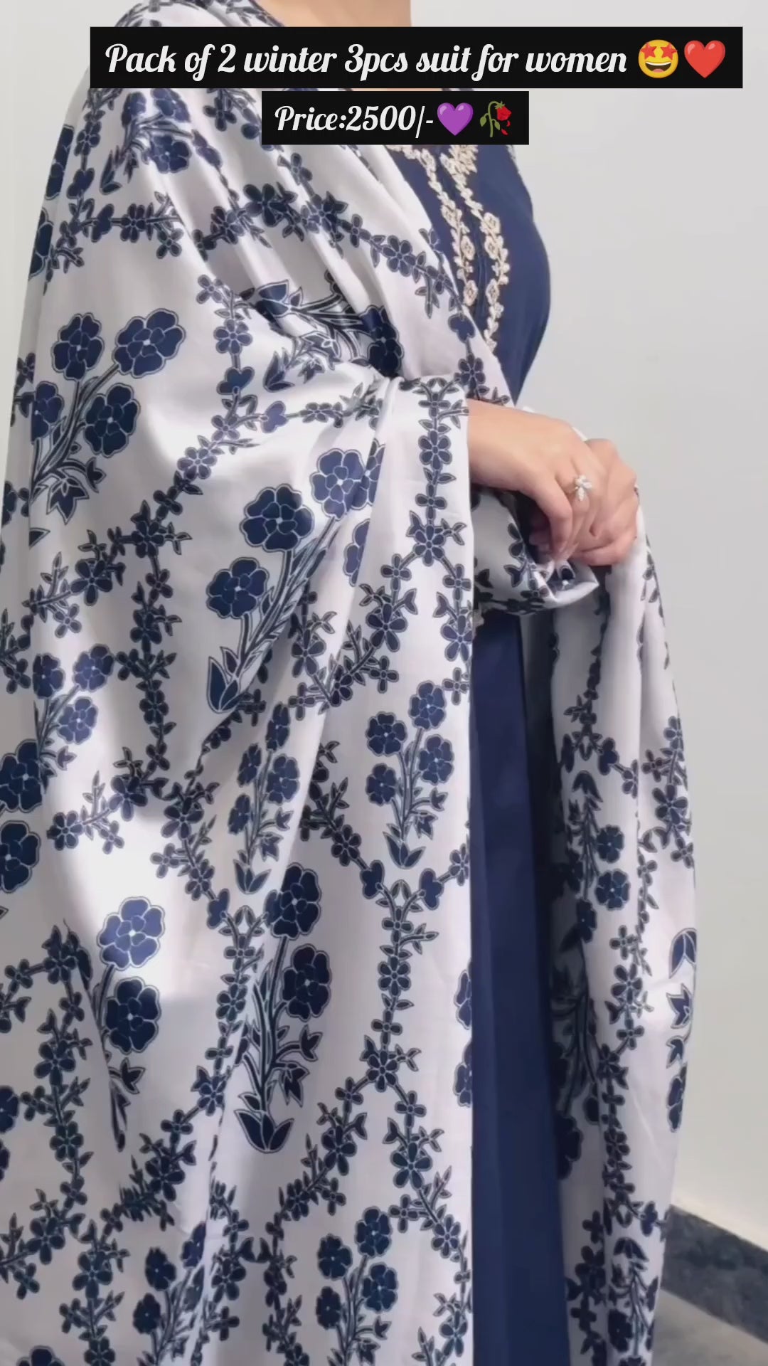 Product Description: Beautiful Pack of 2 Deal Winter 3pcs Suit , long shawl duppta premium quality embroidery 3pcs suit deal pack of 2 all sizes and colors are available 🩷💜