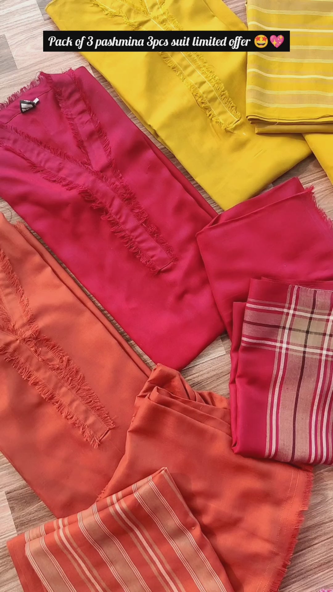 Pack of 3 pashmina 3pcs kurta set πŸ”₯