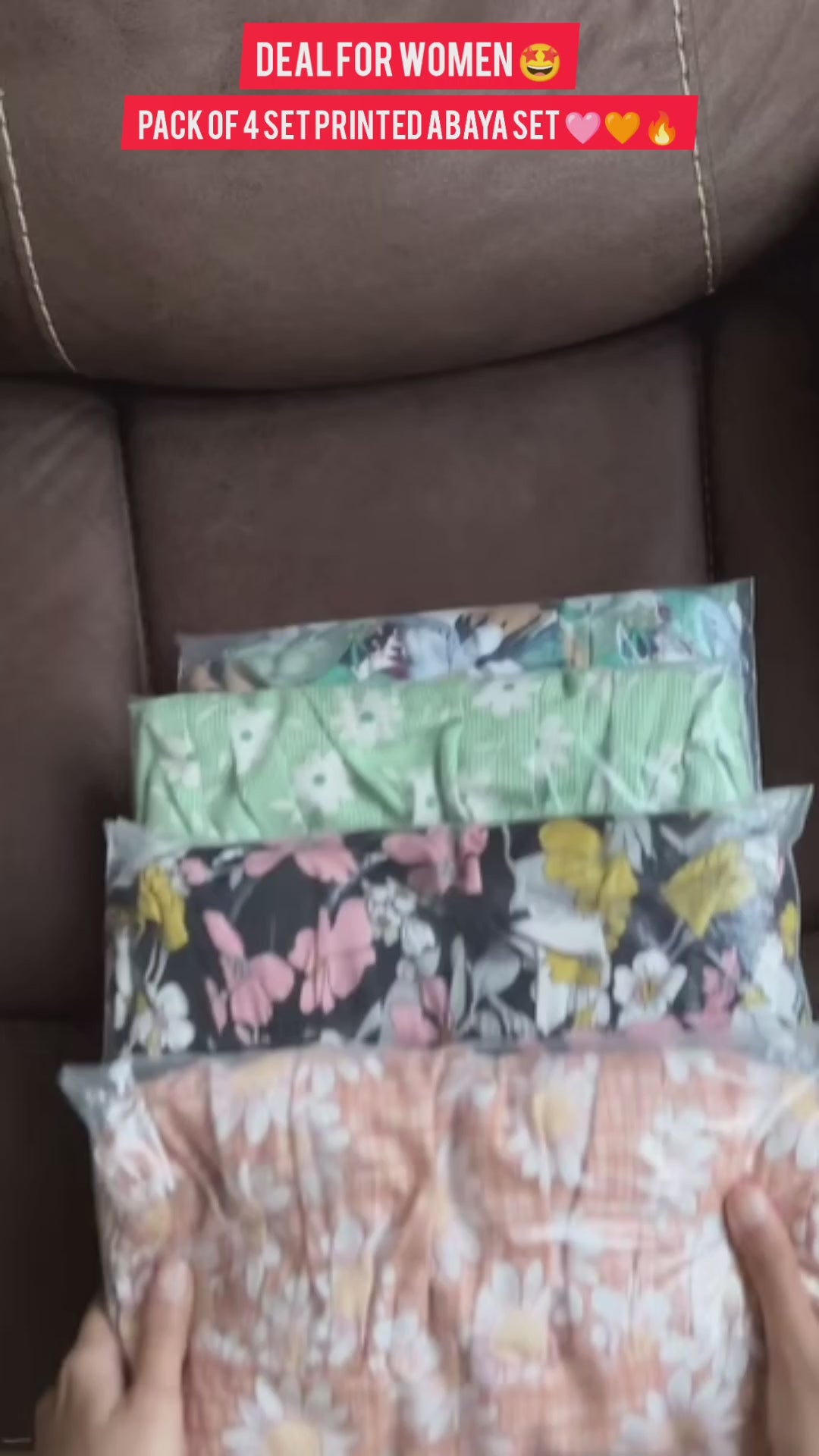 Product Description: amazing Deal pack of 4 printed Abaya set all sizes and colors are available soft fabric 😍