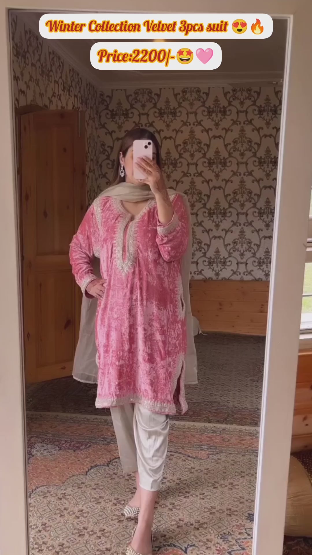 Product Description: Velvet 3pcs suit for women winter collection π soft fabric π― Good quality stuff πΒ