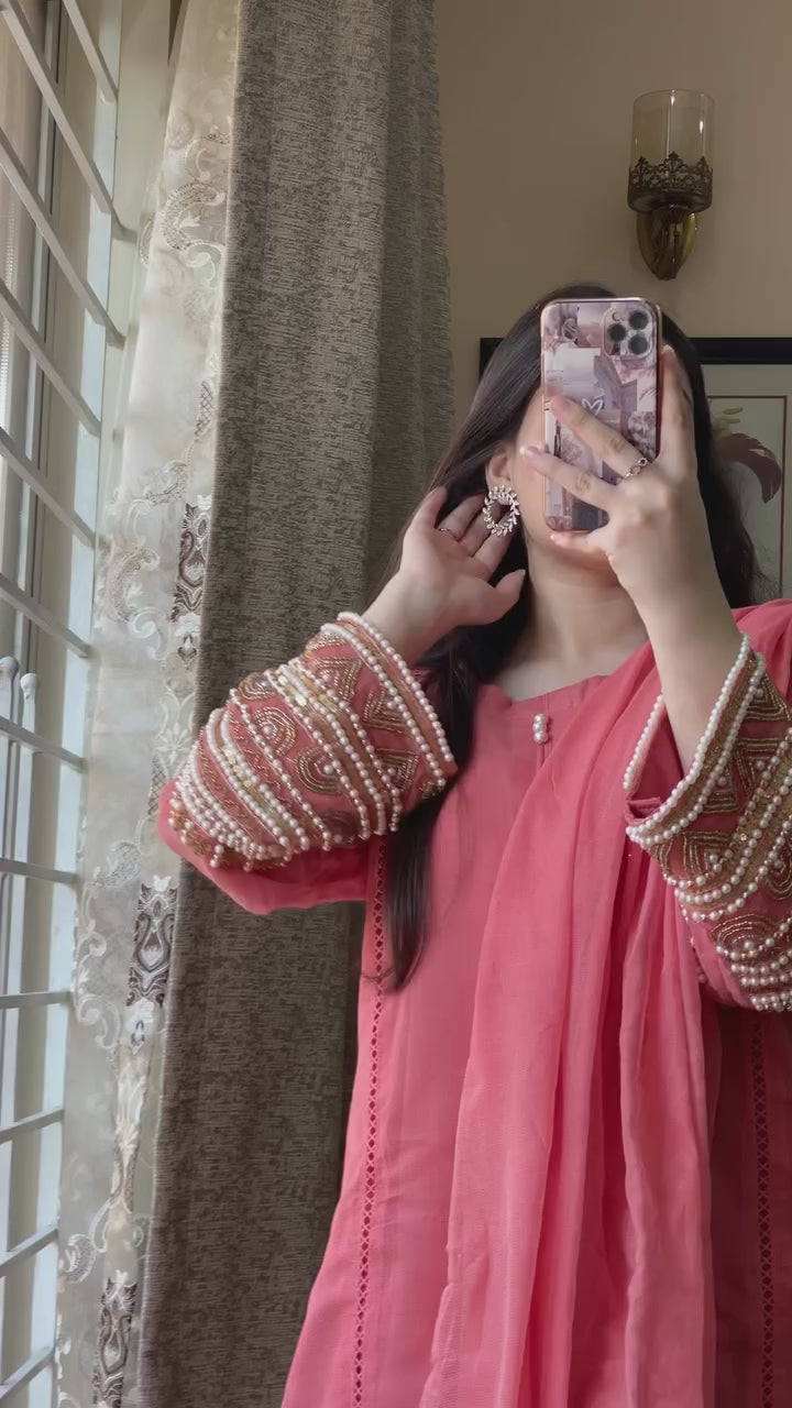 ✨ Exquisite Khaddi Net Fabric & Pearls Work on Sleeves..