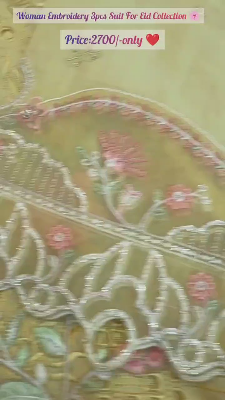 This stunning ensemble includes a delicately embroidered kameez, matching trousers, and a graceful dupatta – ideal for festive occasions, gatherings, or daily chic wear.